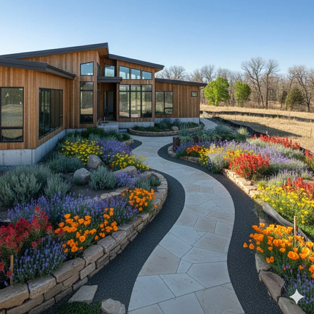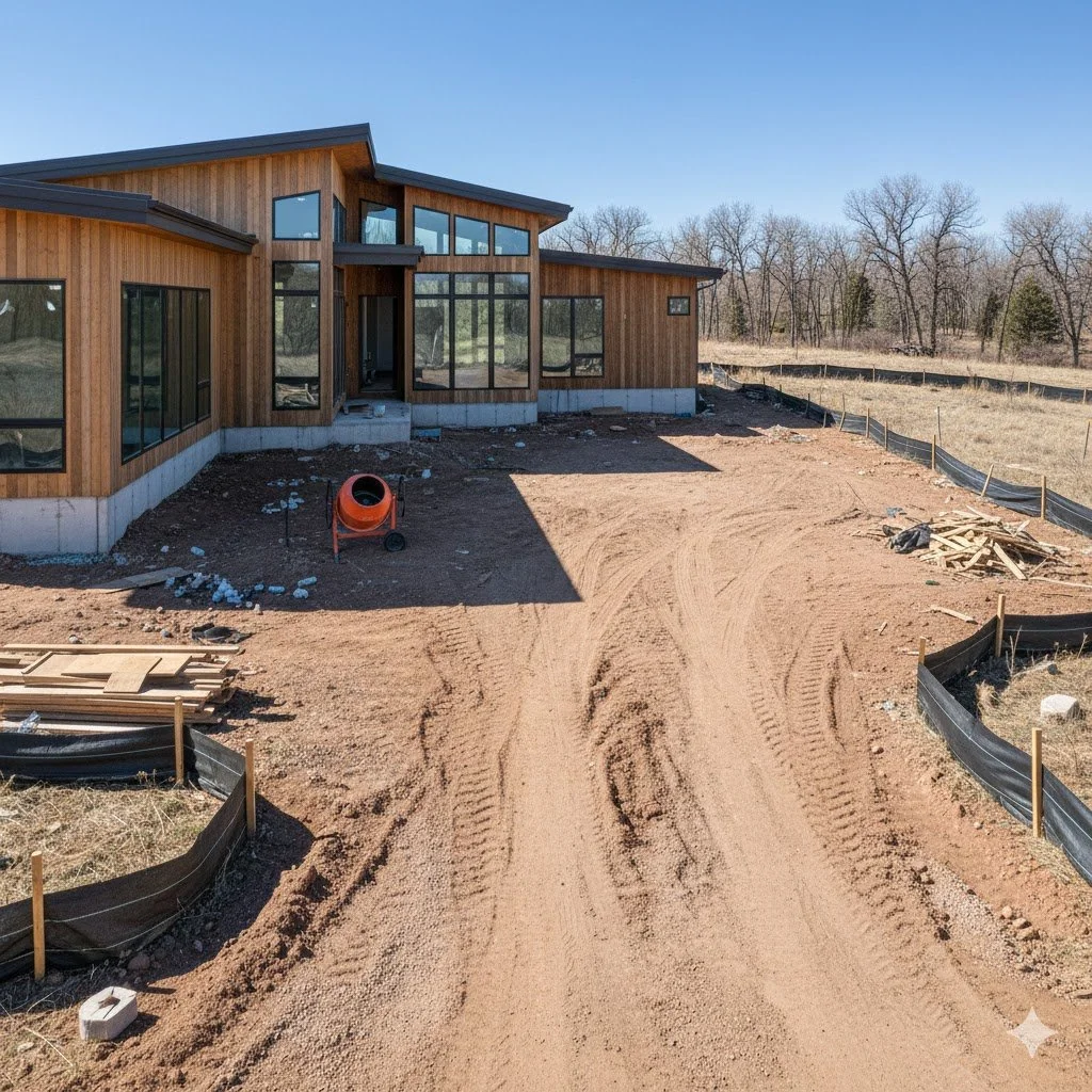 This project, surrounding a newly constructed Mountain Modern estate, requires precision engineering to integrate the angular, concrete architecture with the natural, sloping landscape. We utilize stacked indigenous rock walls and terraced planting beds to manage run-off and mitigate fire risk. The plant palette features structural, low-water shrubs (like Dwarf Mountain Mahogany and Blue Grama Grass) selected for their elegant form and resilience. The result is a serene, low-maintenance landscape that extends the minimalist aesthetic of the home into the high-altitude environment.